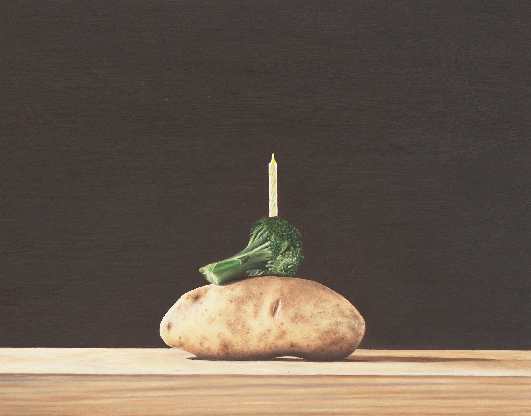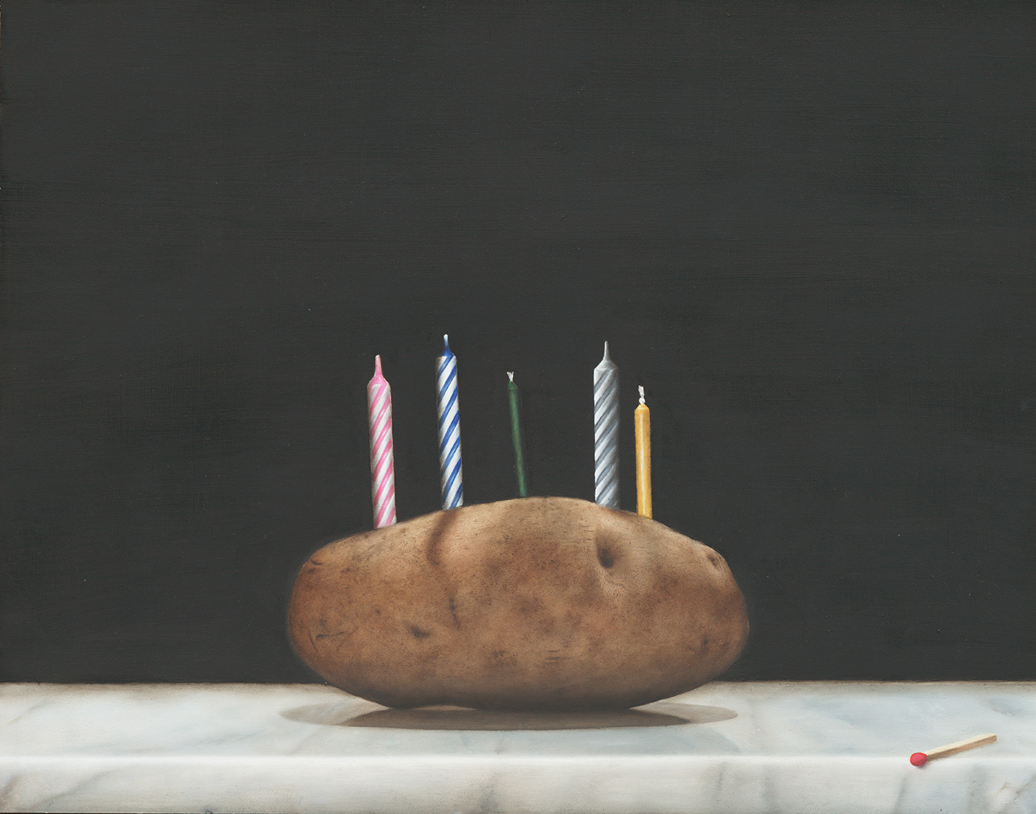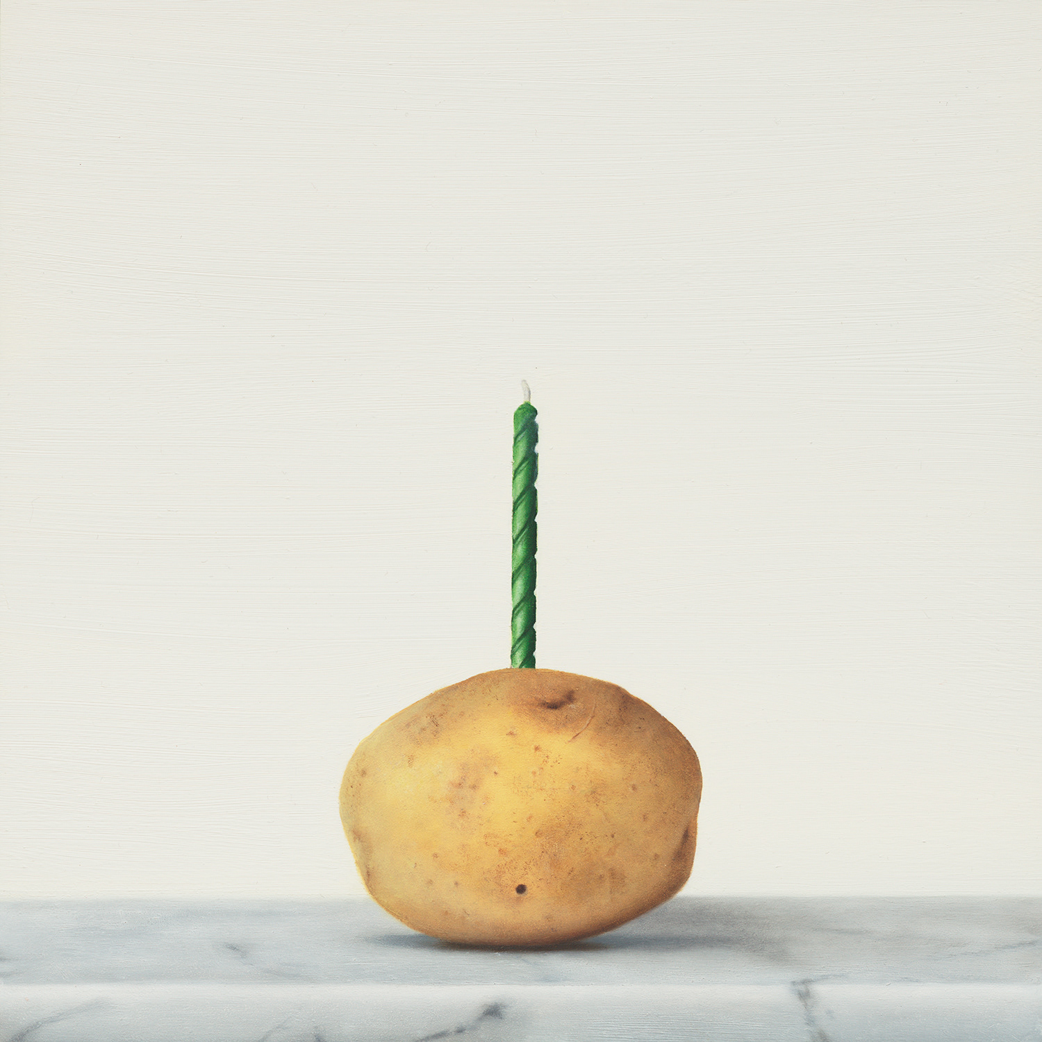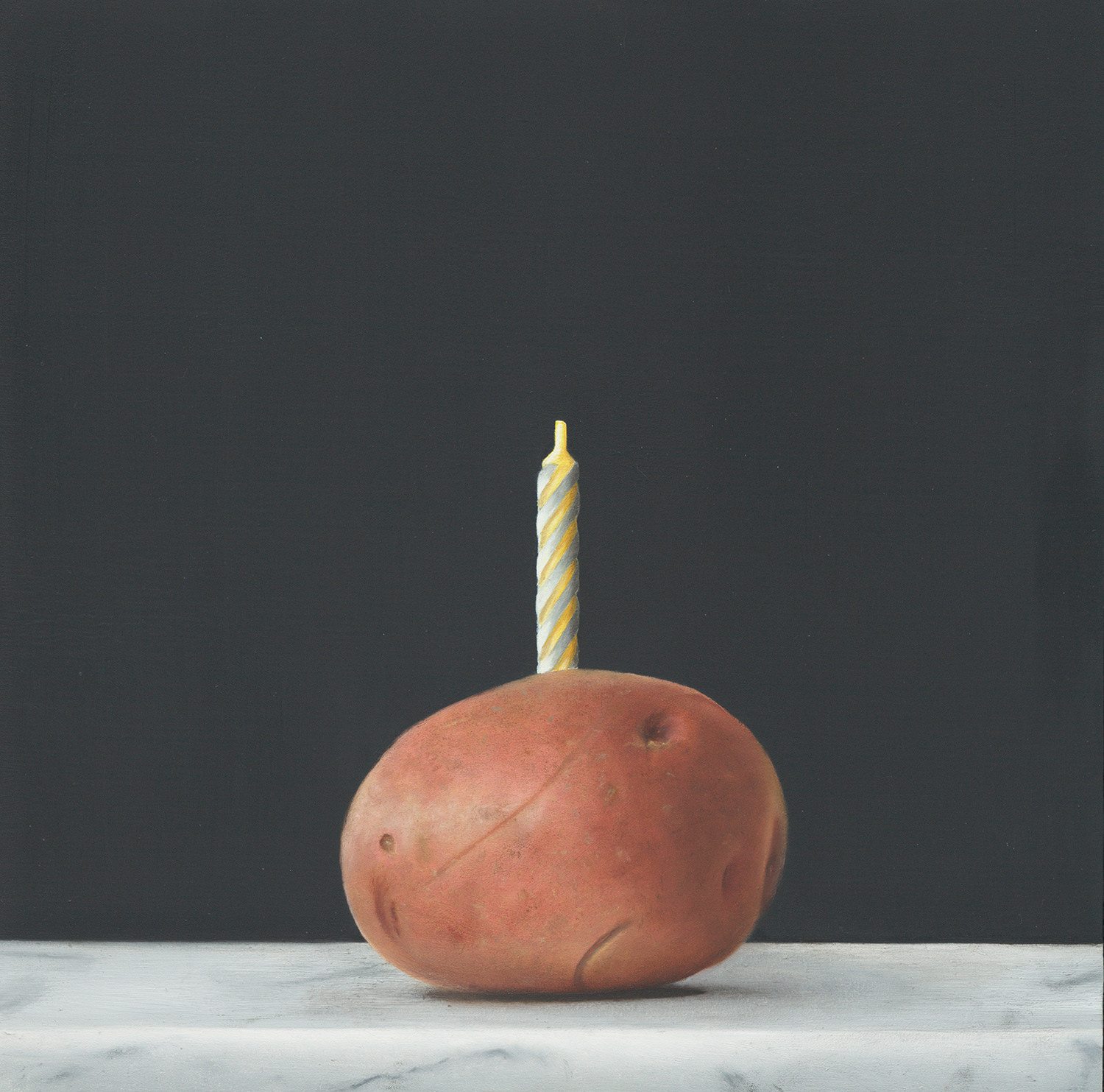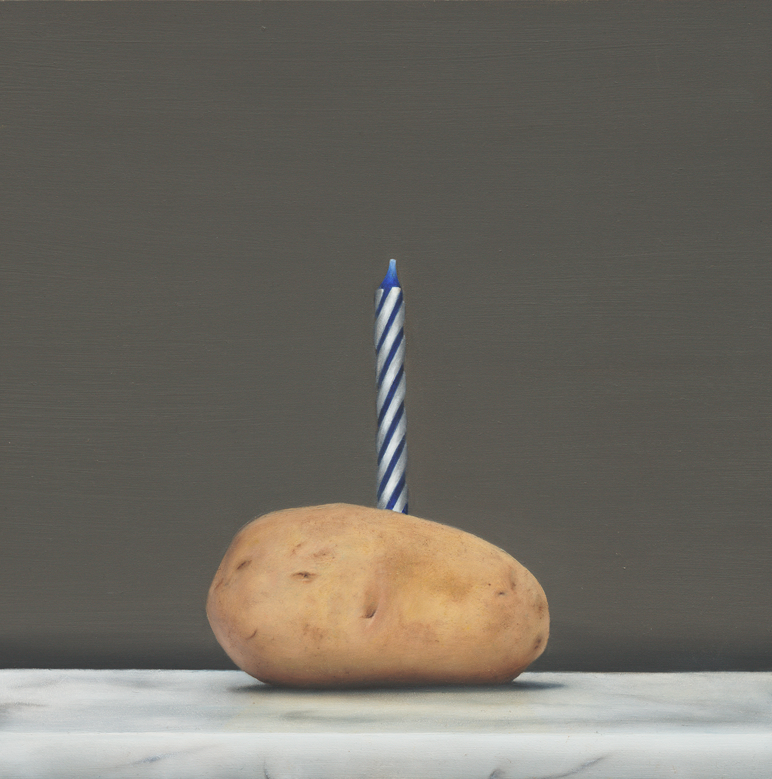 Birthday Potato #1, 2024. Oil on panel. 14 x 11 inches.